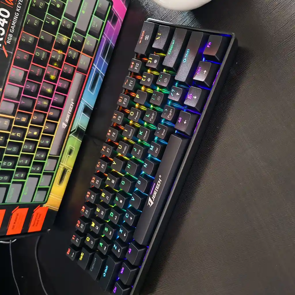 • Teclado Mecánico JERTECH JK540. • Teclado al 60% (61 teclas). • Sistema de cambio de luces (Diferentes modos de iluminación). • Posibilidad de Cambio de Switch por uso excesivo. • Switch rojos.