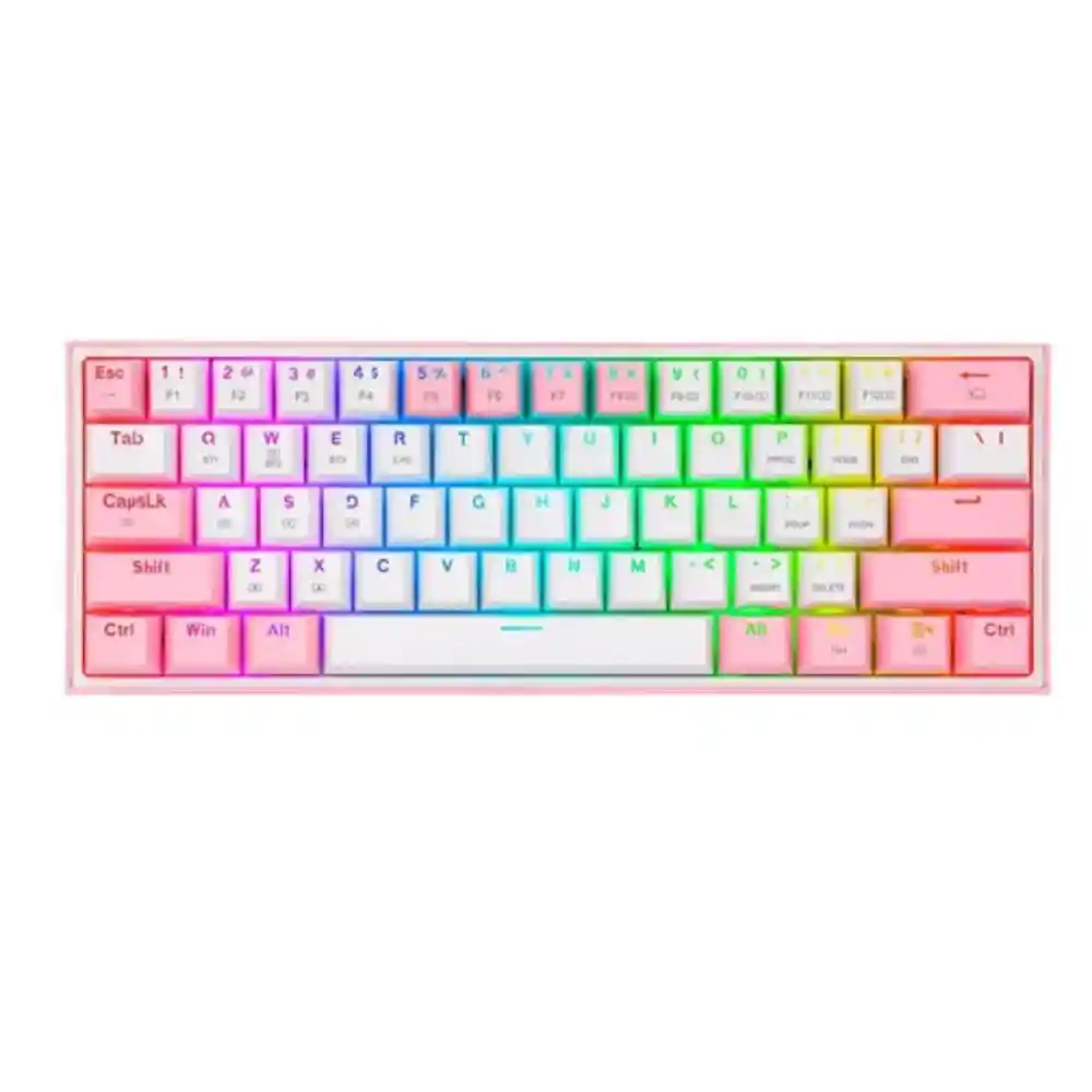 El teclado mecánico inalámbrico 2.4 BT SW Rojo Redragon Fizz Pro K616-RGB es la opción ideal para aquellos gamers que buscan funcionalidad y estilo. Con un diseño compacto en color blanco y rosa, este teclado no solo destaca por su estética, sino también por su calidad de construcción, con una altura de 10.6 cm y un peso de 474 g que aseguran estabilidad durante largas sesiones de juego. Equipada con switches Redragon Red, su respuesta táctil te proporcionará la velocidad y precisión necesarias para mejorar tu rendimiento. La conexión inalámbrica de hasta 8 metros y su capacidad Bluetooth te permiten disfrutar de una libertad total de movimiento, sin renunciar a la velocidad y la eficacia que caracteriza a los teclados mecánicos. La retroiluminación RGB te permitirá personalizar tu experiencia con una variedad de efectos visuales, adaptándose a tu estilo personal y creando una atmósfera única. Las 61 teclas, incluidas 13 teclas de acceso rápido silenciosas y con tecnología anti-ghost, aseguran un control preciso y eficiente durante el juego. Diseñado con un conector USB-C y un cable removible de 1.8 m, la conectividad nunca será un inconveniente. Además, su resistencia a salpicaduras ofrece una mayor tranquilidad durante su uso. Con el teclado Redragon Fizz Pro, cada pulsación cuenta, llevándote a un nuevo nivel de experiencia de juego.