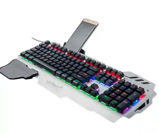 Teclado mecánico de teclas Cherry azul (Blue keys) Ideal para juegos de alta exigencia de velocidad y precisión ofreciendo confiabilidad para cumplir la demanda de los juegos que requieren máxima capacidad de reacción y durabilidad Es una solución que responde a tus necesidades. También puedes escuchar un click cada que digitas una tecla. Es cómodo y responde con facilidad mejorando tu experiencia de juego. Hasta 50 millones de pulsaciones. Luces LED RGB con 26 ritmos o secuencias de iluminación