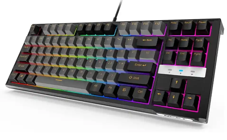 Teclado mecánico para juegos, compacto de 87 teclas intercambiable en caliente, teclado RGB para juegos con interruptores rojos de 1.77 oz, anti-fantasma, para juegos y escritura de PC