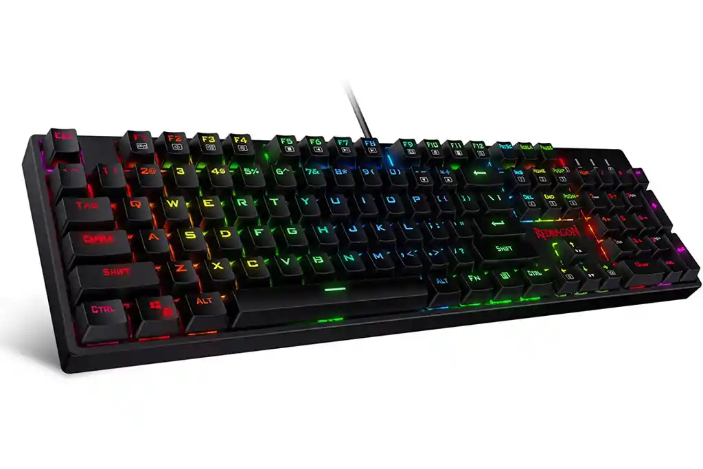 Interruptores rojos profesionales: el teclado para juegos Redragon K582 está equipado con interruptores rojos Redragon enchufables, que son interruptores lineales y de arriba a abajo. Estos interruptores requieren menos fuerza para presionar hacia abajo y las teclas se sienten más suaves y más fáciles de usar. Sin "bump" táctil, pero sensible. Una gran opción para trabajar y jugar N-key Rollover: 100% anti-ghosting 104 teclas garantizan la más precisa pulsación simultánea. Totalmente programable: reasigna cualquier tecla o configura las macros más extremas para jugar sin esfuerzo. Retroiluminación RGB dinámica: 6 temas de retroiluminación y 18 modelos de retroiluminación te permiten escribir en la oscuridad. Puedes ajustar su brillo con FN + arriba/abajo. Tecla de flecha en cualquier modo sin respiración. Durabilidad extrema: prueba de 50 millones de pulsaciones de teclas, pequeña fuerza de accionamiento y corto viaje lo hacen Base sólida con diseño de teclas ABS de doble inyección, está construido para soportar toda una vida de juegos. Amplia compatibilidad: compatible con sistemas informáticos incluyendo Windows10, Windows 8, Windows 7, Mac OS X, Windows XP, Windows Vista, etc. Con puerto USB chapado en oro para garantizar la estabilidad de la transmisión de datos. Sin demora, sin errores