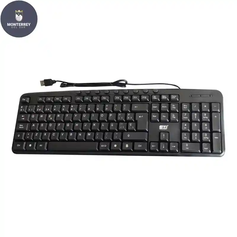 El elegante teclado con cable en negro presenta un perfil fino y una cómoda pendiente suave, las teclas multimedia para silenciar audio, abrir el correo electrónico, etc. también son una prioridad. La conexión al ordenador se realiza a través de un puerto USB, Trae indicadores de mayúscula y teclado numérico. Idioma Español.