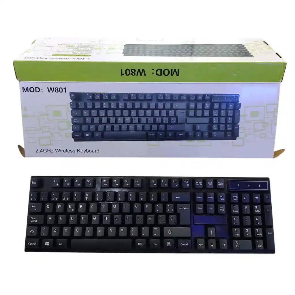 Teclado Negro Inalambrico Wireless Keyboard MOD-W801 con Conexion USB Sin Clable