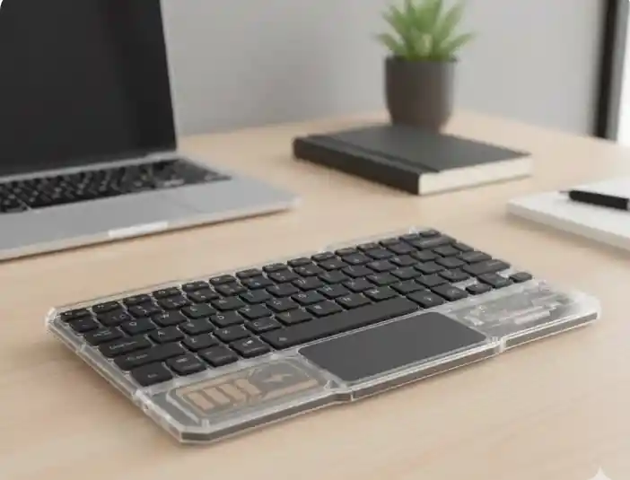 COLORES DISPONIBLE A ROTACION DE INVENTARIO BLANCO TECLADO INALAMBRICO BLUETOOTH TOUCH RECARGABLE WIN ANDROID IOS Con batería recargable. Conexión Bluetooth. Diseño Slim. Retroiluminado, mouse touch Compatible con Windows, Androdi y Apple Tipo de artículo: Teclado Bluetooth Distancia de trabajo: Aprox. 10 m / 32,8 pies Nombre de emparejamiento: Teclado Bluetooth Objeto aplicable: Tableta/Laptop/Computadora Compatibilidad: Para Windows, para IOS y para Android Modo de activación: Descubre el teclado transparente 10 IN, diseñado para combinar funcionalidad y estilo. Con un fondo transparente que resalta el color sólido de las teclas, este teclado está disponible en Tiffany, verde, negro, blanco y rosado, y aporta un toque único a tu espacio de trabajo. DISEÑO MODERNO Y ATRACTIVO El teclado cuenta con un fondo transparente que deja ver el diseño limpio y sofisticado. Las teclas de color sólido ofrecen un contraste atractivo y facilitan la visibilidad, creando una estética que recuerda a las baterías modernas. ESCRITURA SILENCIOSA Y AGRADABLE Equipada con teclas de membrana de alta calidad, la escritura es suave y silenciosa, ideal para largas sesiones de trabajo o estudio. El diseño ergonómico ayuda a reducir la fatiga y proporciona una experiencia de tecleo cómoda y eficiente. CONEXIÓN SIN ESFUERZO El teclado se conecta fácilmente mediante un cable USB, asegurando una conexión estable y sin interrupciones. La instalación es rápida y sencilla, permitiéndote comenzar a usarlo al instante. FÁCIL DE LIMPIAR El diseño transparente no solo es estéticamente agradable, sino que también facilita la limpieza del teclado, manteniéndolo en perfectas condiciones con el mínimo esfuerzo. Destacados: Tipo de teclado: Membrana con fondo transparente y teclas de color sólido Conexión: USB Tamaño: 445 x 135 x 25 mm Peso: 450g