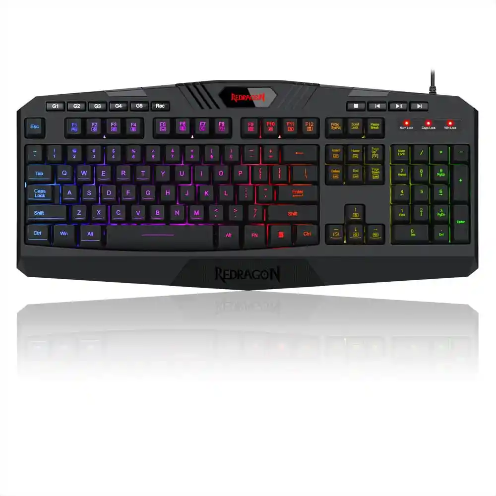 Construido Con Plástico Abs Reforzado Con un Diseño Pensado Para Largas Horas de Juego y un Reposamuñeca Parte de su Carcasa. Keycaps de Gran Durabilidad Grabadas Con Láser Con un Perfil Más Bajo en Relación a Las Keycaps Normales. Los Contactos Están Encapsulados Haciéndolo Anti Salpicaduras. Su Cable es Engomado y Resistente Con Una Ficha Usb Enchapada Para la Mejor Transmisión. Cuenta Con Una Iluminación Rgb Configurable Mediante Accesos on The Fly Desde el Mismo Teclado. El Detalle de Iluminación Abarca Tanto Las Teclas Como el Logo Superior. Las Silenciosas Teclas y el Encapsulado le Dan Una Sensación Suave al Presionar. Contamos También Con Botones Macros Dedicados Programables Desde el Mismo Teclado También Con Botones Multimedia Dedicados Para Tener Todo lo Necesario a Mano. Como no Puede Faltar en un Teclado Gamer Podemos Bloquear la Tecla Windows e Intercalar Las Teclas Direccionales Con Wasd. Tipo Teclado: Membrana Teclas Multimedia: Si Bloqueo Tecla Windows: Si Reposamuñecas: Si Fijo Retroiluminado: Si Rgb Full Matriz: Anti-Ghosting Con 19 Key Rollover Anti Salpicaduras: Sí Retroiluminado: Si Rgb Full Cable: Goma Reforzado. Soporta 12 Kg y 10000 Flexiones. Usb Enchapado en Oro Construcción: Plástico Abs Reforzado Distribución: Español Peso: 0.97 Kg Dimensiones: 44.5 x 20 x 3 Software: No Sistema Operativo: Windows 10 Windows 8 Windows 7 Windows Vista o Windows Xp