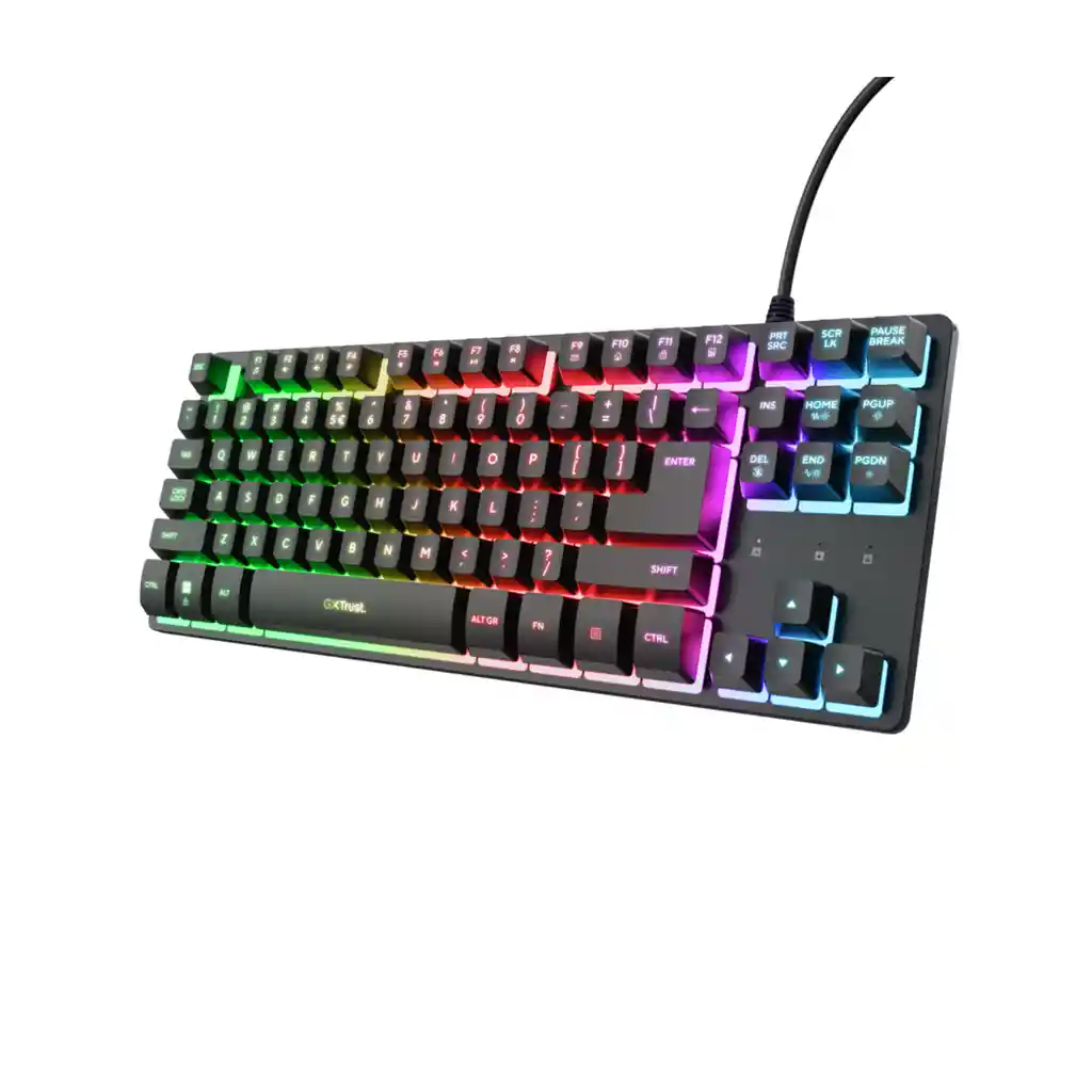 Domina el campo de batalla con el Trust GXT 833 Thado, un teclado gaming de diseño TKL (Tenkeyless) que elimina el teclado numérico para ofrecerte más espacio para el movimiento del mouse. Construido con una robusta placa superior metálica, este teclado no solo es duradero, sino que también destaca por su vibrante iluminación LED multicolor con efecto respiración. Con tecnología anti-ghosting y un diseño compacto, el Thado es el compañero ideal para jugadores que buscan portabilidad y rendimiento en cada partida.
