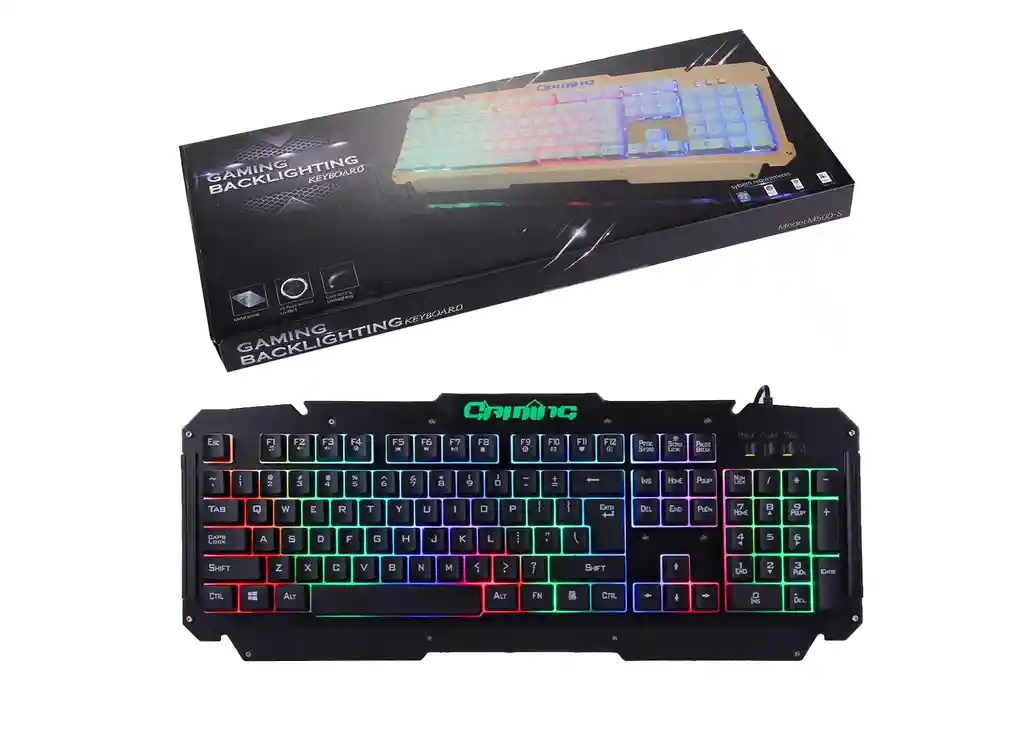 El teclado M500-S es un maravilloso teclado para pasar tardes y noches de juego, sus teclas son suaves y cómodas. Tiene una iluminación interna que le da una presencia agradable y permite largas jornadas de juego en condiciones de poca luz. Sus teclas están grabadas, lo cual permite que la duración de sus marcas sea mayor y no se desgaste rápidamente con el uso continuo. CARACTERÍSTICAS: Estructura de Aluminio para una larga vida útil. El teclado tiene 104 teclas. Botones de ajuste. Led interno de colores y bastante llamativo. Conector USB 2.0 Sistemas Operativos compatibles: Windows XP / Vista / 7 / 8 / 10/ Mac OS. Hecho para jugadores de alta gama y gamers profesionales. Plug and Play, solo debes conectarlo para comenzar a usarlo.
