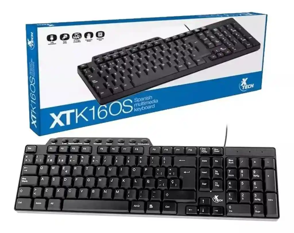 Teclado XTech XTK160S alambrico Usb. Teclado QWERY, español y con teclado numérico incluido(bloque numérico).