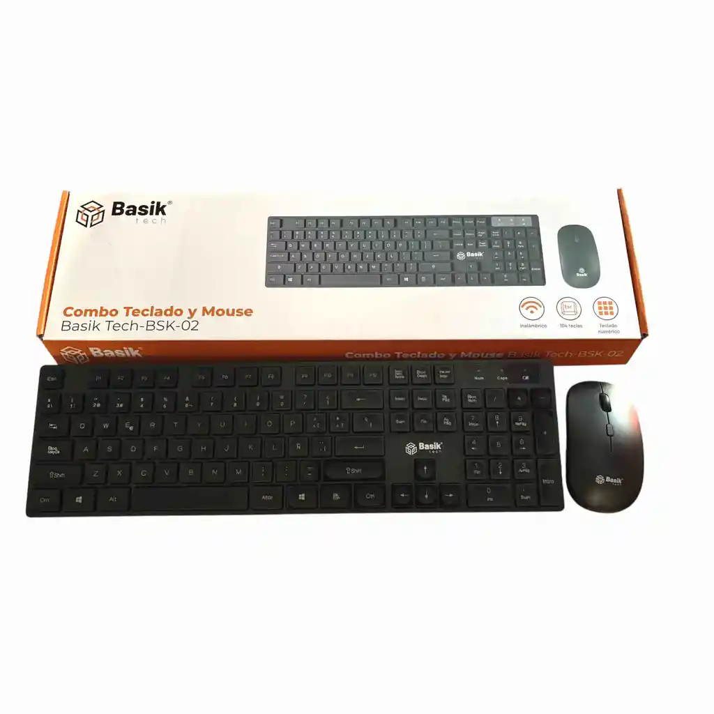 · Combo mouse teclado inalámbrico BASIK · Interfaz: Receptor inalámbrico USB nano 2.4GHz · Plug and play · Alimentación: Para teclado 1 batería AAA y para mouse 1 batería AA (no incluidas) · Compatible con Windows, Mac OS, Linux · Material: ABS · Distancia de trabajo: 8-10M · Teclado · Número de teclas: 104 teclas · Dimensiones:445 x 147 x 21mm · Mouse · Número de teclas: 4 · Tecnología de mouse: Óptico · Sensibilidad: 1600 DPI