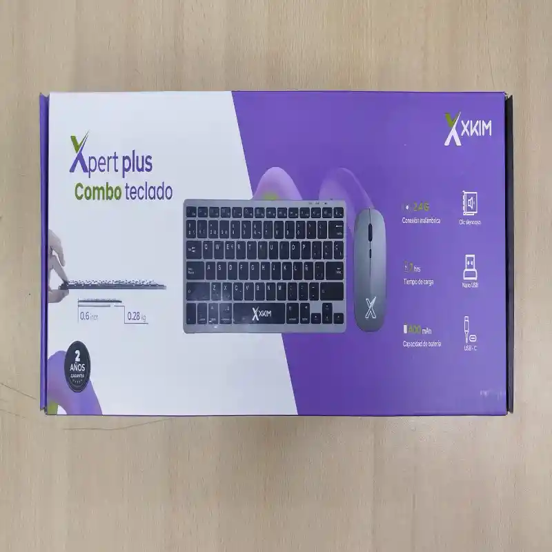 Teclado y Mouse X Kim Xpert Plus Inalámbrico Conjunto inalámbrico compuesto por teclado de tamaño completo y ratón óptico ergonómico, ideal para uso doméstico u oficina. Ofrece libertad de movimiento, diseño moderno y una experiencia de escritura cómoda y silenciosa. Características: – conexión inalámbrica mediante receptor USB – teclado de diseño extendido con teclas de perfil bajo y escritura suave – mouse óptico con diseño ambidiestro y desplazamiento fluido – alcance de hasta 10 metros para mayor comodidad – tecnología de bajo consumo energético – compatible con Windows, macOS y otros sistemas con puerto USB – instalación automática sin necesidad de software adicional Perfecto para quienes buscan funcionalidad y practicidad sin cables.