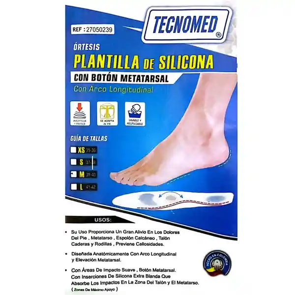 Tecnomed Plantillas Silicona Con Botón Talla L