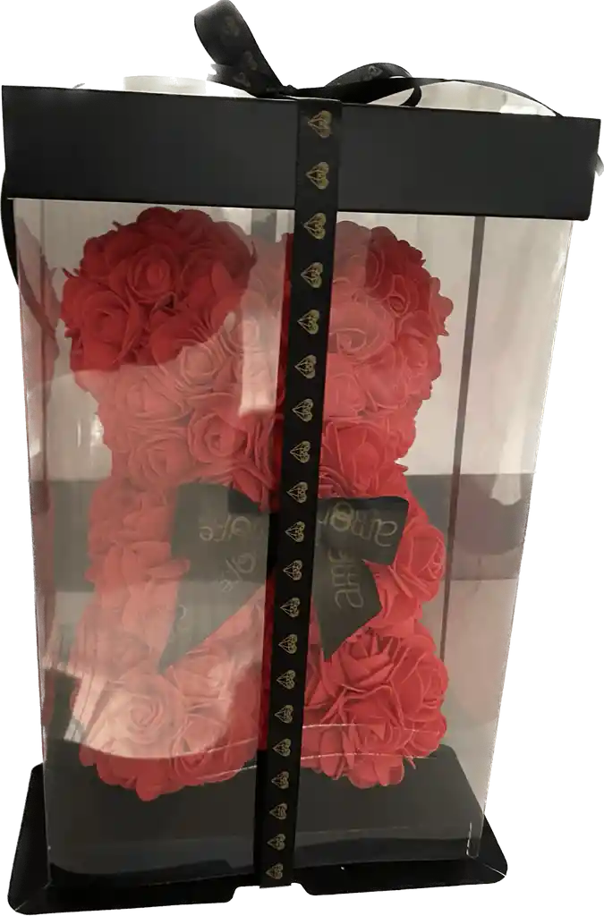 Oso de Rosas elaborado con 300 rosas artificiales elaboradas completamente a mano y empacado en caja de lujo.