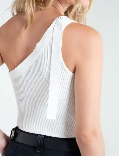 582E011 Camiseta Tejida de un Solo Hombro Crudo Puro Claro.