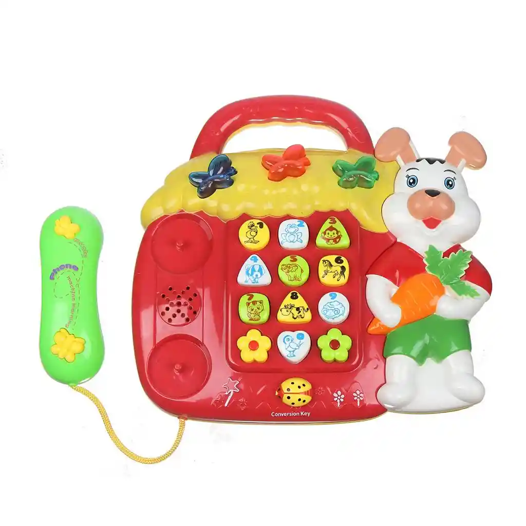 El teléfono interactivo con diseño de conejo es un juguete educativo que cuenta con botones de colores, figuras de animales y melodías que estimulan la atención y el aprendizaje de los más pequeños; incluye un auricular y efectos divertidos que permiten a niñas y niños mayores de 2 años desarrollar la imaginación, la coordinación y las habilidades sensoriales mientras disfrutan de un juego lleno de música y entretenimiento. Ficha Tècnica: Dimensiones: 24 cm x 22 cm x 5 cm Material : Plástico ABS no toxico Edad recomendada: + 3 años Tipo de Batería: AA (Incluidas) Certificado de conformidad: SL-CS-210044 Referencia: 855-1A Términos de Garantía: Para defectos de fábrica o retractos: Por favor revise el producto apenas lo reciba y antes de usarlo. No aplican ley de retracto o defectos de fábrica luego de usar el producto. Se manejan máximo 5 días para reportar defectos de fábrica (por ejemplo, producto funciona mal, piezas faltantes, rotas, etc).