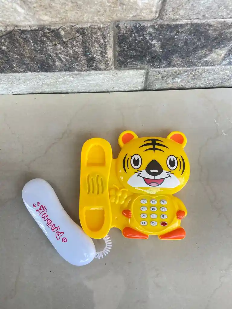 Es un teléfono de juguete musical o didáctico para bebés y niños pequeños, con diseño de tigre. Este tipo de juguete electrónico está diseñado para el aprendizaje temprano y el entretenimiento de los niños a través del juego de imitación.