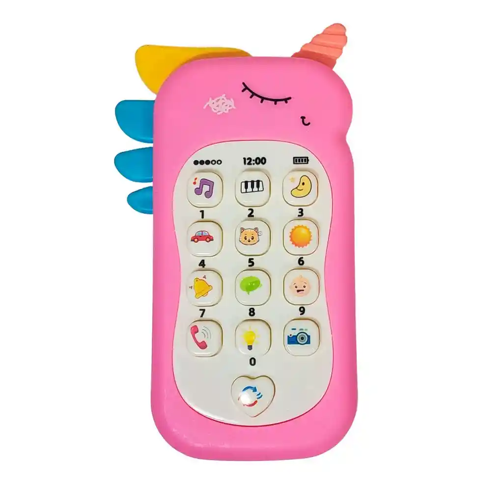 ¡Despierta la magia del aprendizaje y la comunicación con este adorable teléfono de juguete en forma de unicornio! Diseñado para cautivar a los más pequeños con su encantadora carita soñadora y vibrantes colores, cada uno de sus botones de fácil presión es una puerta a un mundo de descubrimientos, lleno de alegres melodías, sonidos de animales, notas musicales y mucho más. Mientras tu pequeño explora y se divierte imitando a los mayores, también estará desarrollando su motricidad fina y su curiosidad de una manera interactiva y segura. Este celular didáctico es el primer "smartphone" perfecto, combinando la fantasía que aman los niños con el juego educativo que valoran los padres, garantizando horas de sonrisas y exploración. Ficha Técnica: Material: Plástico ABS Dimensiones : 14 cm x 7 cm x 2 cm Funcionamiento: 2 Baterias AAA Apto para: + 3 Años Referencia: 2168-2 Certificado de conformidad: CS-LCO-13233-2021S2/432 ** _Para defectos de fábrica o retractos: \_Por favor revise el producto apenas lo reciba y antes de usarlo. No aplican ley de retracto o defectos de fábrica luego de usar el producto. Se manejan máximo 5 días para reportar defectos de fábrica (por ejemplo, producto funciona mal, piezas faltantes, rotas, etc). Para hacer efectiva la devolución el producto debe devolverse con el empaque original, el cual debe estar en buen estado, incluir todos los documentos y las partes completas y sin daños.