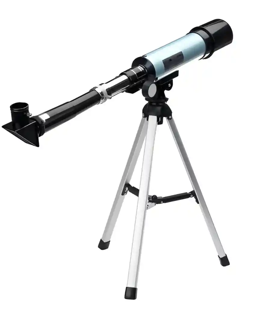 Telescopio Astronómico Refractor F36050 con aumento de hasta 90X, ideal para la observación de cuerpos celestes y vistas terrestres. Cuenta con un objetivo de cristal óptico de 50mm con multicapa completa, lo que permite obtener imágenes claras incluso en condiciones de baja iluminación. Este modelo es compacto y versátil, recomendado para niños y adolescentes. Especificación: Color: plata Tamaño: aproximadamente 39,5*21,5*8,5 cm Material del trípode: aleación de aluminio Longitud Focal: aproximadamente 360mm Apertura: 50mm Contenido del paquete: 1 * tubo del telescopio 1 * espejo diagonal 1 * buscador de estrellas 1 * ocular H6mm 1 * ocular H20mm 1 * lente Barlow 1 * ocular erector 1 * trípode 1 * lupa de vidrio