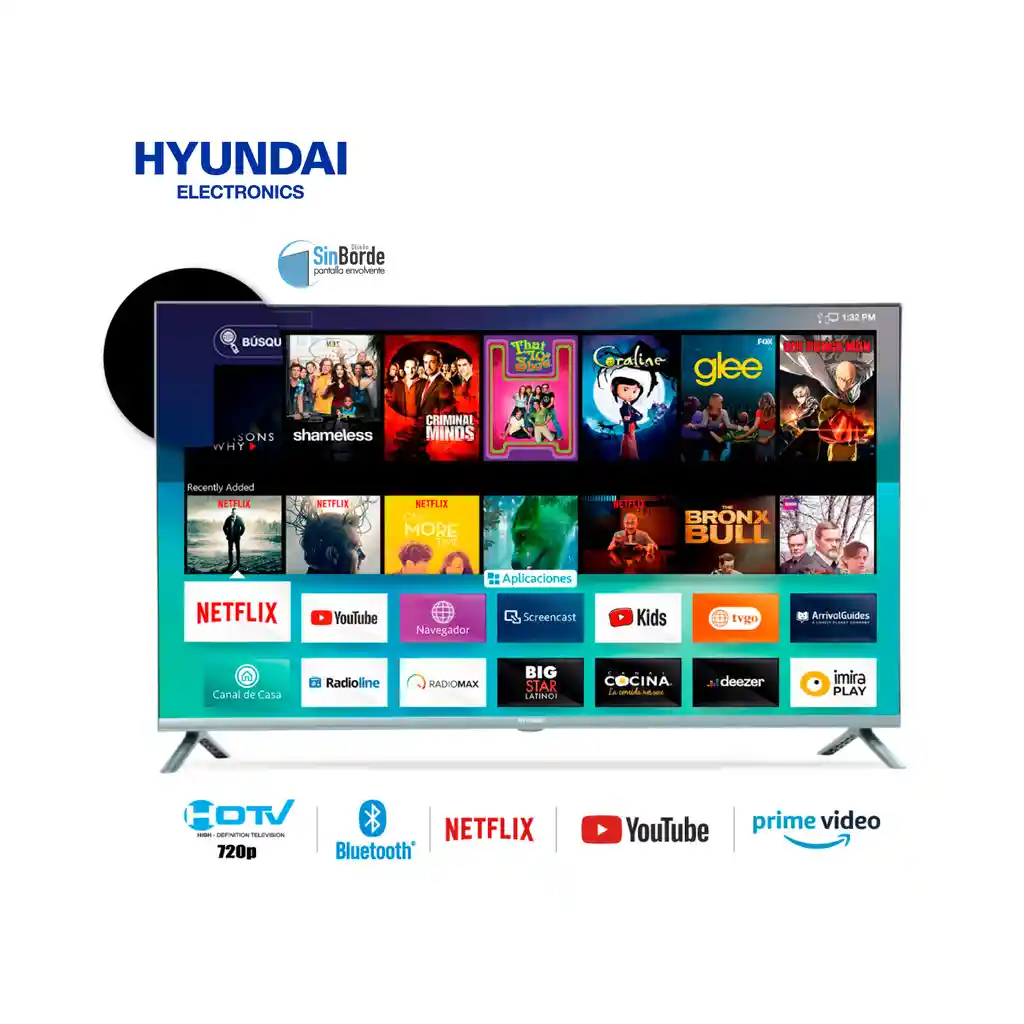 32 pulgadas, HD, Smart TV, 1 puerto USB, 2 puertos HDMI, Bluetooth
