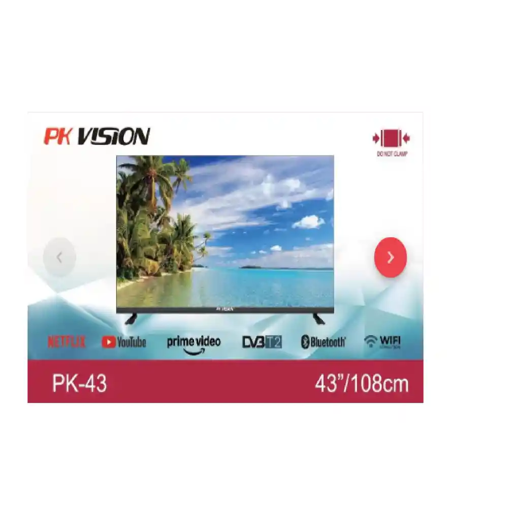 SKU: PK-43 Televisor PK VISION, smart tv, incluye ANDROID 14. Resolución 1920x1080, 1 puerto AV, 2 puerto HDMI, 2 puerto USB, antena TDT, manual, control remoto y tarjeta de garantía. La garantía es valida por defectos de fabrica, no por mala manipulación del dispositivo Se recomienda para zona rurales hacer uso de una UPS (estabilizador de energía) ya que eso no cubre la garantía, por los picos de energía que tienen esos sectores Disfruta de una experiencia visual envolvente con el Televisor PK Vision de 43 pulgadas modelo PK-43. Diseñado para ofrecer excelente calidad de imagen, conectividad inteligente y acceso directo a tus plataformas favoritas, es ideal para sala, habitación o espacios de entretenimiento. Descripción del producto El PK-43 cuenta con pantalla de 43 pulgadas (108 cm) que brinda una visualización amplia y cómoda. Su sistema Smart TV permite conectarse a internet mediante WiFi para acceder a aplicaciones de streaming como Netflix, YouTube y Prime Video, entre otras compatibles. Integra sintonizador digital DVB-T2 para señal abierta en Colombia, además de conectividad Bluetooth que facilita la vinculación con parlantes, barras de sonido u otros dispositivos inalámbricos. Su diseño delgado y moderno combina fácilmente con cualquier ambiente. Características principales Pantalla de 43 pulgadas (108 cm). Resolución en alta definición. Función Smart TV. Conectividad WiFi. Bluetooth integrado. Sintonizador digital DVB-T2. Puertos HDMI y USB. Incluye control remoto. Beneficios Acceso directo a plataformas de streaming. Conexión inalámbrica con dispositivos de audio. Imagen amplia y definida para mejor experiencia visual. Ideal para películas, deportes, series y videojuegos. Fácil instalación en mesa o soporte de pared compatible. Formas de uso Ver televisión digital abierta mediante DVB-T2. Conectarse a internet vía WiFi para usar aplicaciones. Vincular consolas o reproductores mediante HDMI. Reproducir contenido multimedia desde USB. Cuidados del producto Limpiar la pantalla con paño suave y seco. No aplicar líquidos directamente sobre el panel. Evitar golpes o presión sobre la pantalla. Utilizar regulador de voltaje para mayor protección eléctrica. Recomendaciones de uso Instalar en superficie firme o soporte adecuado. Mantener espacio de ventilación en la parte posterior. Configurar una red WiFi estable para mejor rendimiento Smart.