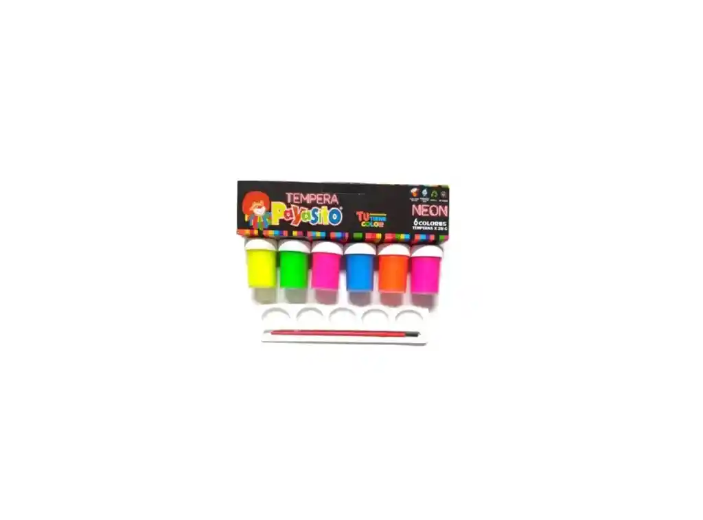 TEMPERA EN CAJA COLORES NEON INCLUYE PINCEL Y PALETA