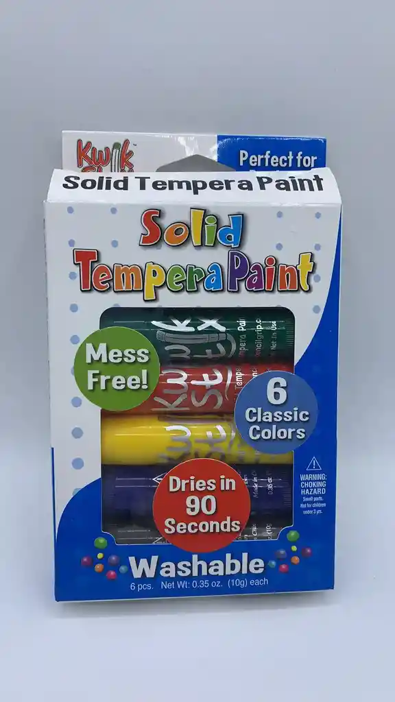 Set de 6 temperas sólidas, pintar con ellas es todo un placer, deslizan cómo un pinta labios, y evitan desastres.