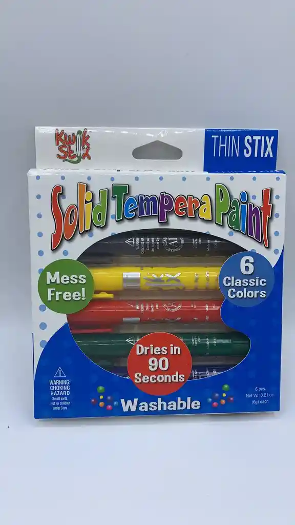 Set de 6 temperas sólidas, pintar con ellas es todo un placer, deslizan cómo un pinta labios, y evitan desastres.