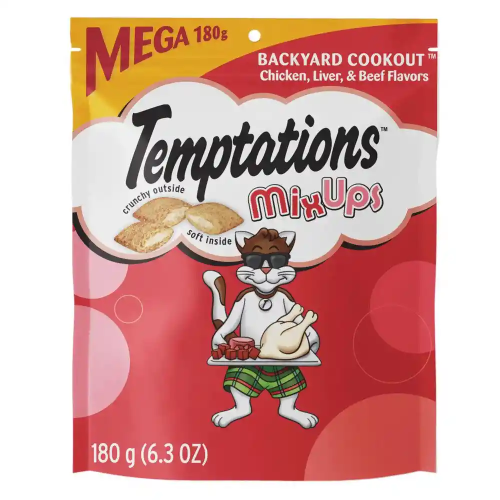 Temptations Snack Para Gatos Adultos Pollo, Hígado Y Carne 180 g SKU - 23100103976 *** QUÉ INCLUYE *** El paquete contiene un Temptations Snack Para Gatos Adultos Pollo, Hígado Y Carne 180 g DESCRIPCIÓN: Sabemos que amas a tu gato y quieres darle lo mejor, incluso cuando se trata de una botana. Tenemos una excelente opción, Temptations, un snack crujiente por fuera y suave por dentro, con un exquisito sabor que tu gato disfrutará. Además cuenta con los nutrientes que requiere día a día y consiente su paladar al mismo tiempo. Temptations es un alimento para gatos 100% completo y balanceado. Temptations es un alimento avalado y recomendado por el Centro de Investigación WALTHAM, una de las autoridades mundiales líderes en nutrición, cuidado y bienestar animal. CARÁCTER{ISTICAS: * Contiene menos de dos calorías por snack. * Es un alimento 100% completo y balanceado. * Con un sabor exquisito a pollo, hígado y carne que encantará a tu gato. * Y una textura irresistible. * Una deliciosa botana crocante por fuera y suave por dentro. MÁS DETALLES: EAN: 23100103976 SKU: 23100103976