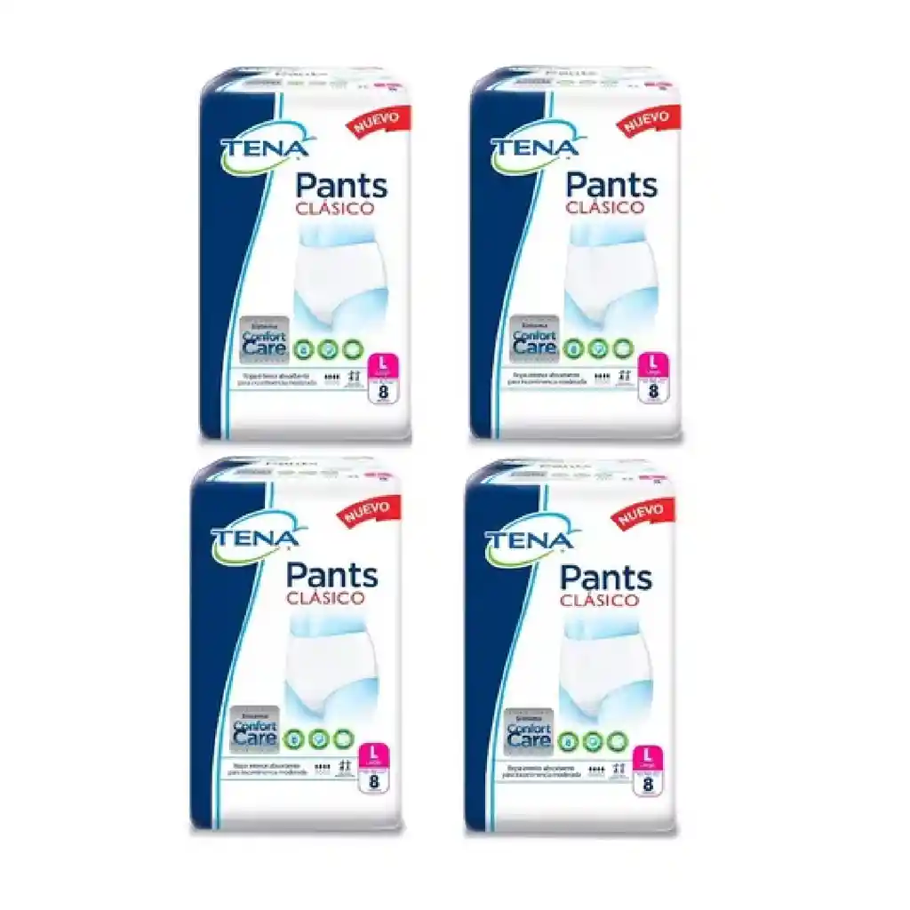 PAÑALES TENA PANTS CLASIC TALLA Lx32 UNDSE ENVIAN 4 PAQUETES DE 8 UNDS