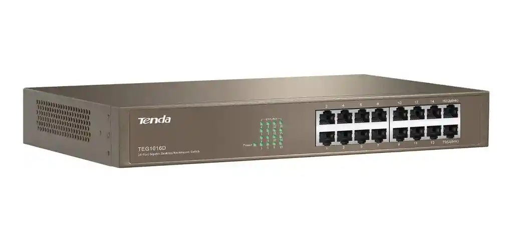 Marca: Tenda Modelo: TEG1016D Puertos incluidos: 16 puertos RJ-45 Tipo de telecomunicación: Store and forward Capacidad de conmutación: 32 Gbps Ancho: 294 mm Altura: 44 mm Profundidad: 178 mm Es montable en rack: Sí