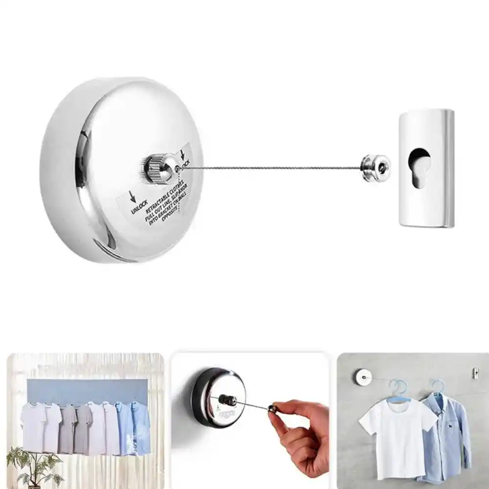 Retráctil. inferior a 2.8mt pies está disponible con botón de bloqueo. Ahorra espacio: muy fácil de retraer si es necesario mover la línea de nuevo a su funda para un fácil almacenamiento. Uso amplio: se utiliza para colgar trajes de baño húmedos, ropa de bebé, prendas delicadas que no se pueden secar a máquina. Gran adición a cualquier hogar, hotel, interior y exterior, lavadero y barco. Alta capacidad de peso: soporta un peso máximo de 22.0 lbs cuando está montado. Inoxidable: acabado en cromo pulido, hace que el artículo sea inoxidable y corrosivo por el uso diario
