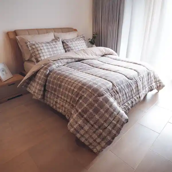 INCLUYE 1 Edredón acolchado 2 Fundas de descanso (cama sencilla incluye 1 funda) CARACTERÍSTICAS Tipo: Edredón acolchado. Estilo: Con diseño estampado. (El estampado del doblefaz puede variar) Material: 100 % Polisweet. Hilos: 150. Incluye funda cojín: No. Hecho en: Colombia. Incluye fundas almohada: Sí. (El estampado de las fundas puede variar) MEDIDAS SENCILLO: Edredón (180x240cm. aprox), funda decorativa (55x95cm aprox) DOBLE: Edredón (215x240cm. aprox), funda decorativa (55x75cm aprox) QUEEN: Edredón (235x240cm. aprox), fundas decorativas (55x75cm aprox) LAVADO Lavar a máquina en ciclo suave o delicado. Usar agua fría o máximo 30 °C. Utilizar detergente suave. Lavar por separado o con prendas similares. No usar blanqueador (cloro) porque puede dañar el color y la tela. SECADO Secar a temperatura baja en secadora. También se puede secar al aire libre, preferiblemente a la sombra. Asegurarse de que el edredón quede completamente seco para evitar malos olores o humedad en el relleno.