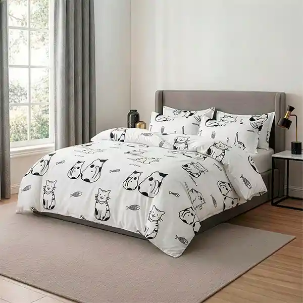 "INCLUYE 1 Edredón acolchado 2 Fundas de descanso (cama sencilla incluye 1 funda) CARACTERÍSTICAS Tipo: Edredón acolchado. Estilo: Con diseño estampado. (El estampado del doblefaz puede variar) Material: 100 % Polisweet. Hilos: 150. Incluye funda cojín: No. Hecho en: Colombia. Incluye fundas almohada: Sí. (El estampado de las fundas puede variar) MEDIDAS SENCILLO: Edredón (180x240cm. aprox), funda decorativa (55x95cm aprox) DOBLE: Edredón (215x240cm. aprox), funda decorativa (55x75cm aprox) QUEEN: Edredón (235x240cm. aprox), fundas decorativas (55x75cm aprox) KING SIZE: Edredón (270x240cm aprox), funda decorativa (55x95cm aprox) INSTRUCCIONES DE LAVADO Usar una cantidad moderada de detergente. No usar cloro o detergente blanqueador Usar agua fria lavar por separado. No mezclar colores. Usar lavadora de gran capacidad, 20 libra. Al salir de la lavadora, no retorcer. Se debe secar por el reverso y no exponer al sol. NOTA: La foto de este producto es de referencia y ha sido ambientada. No incluye accesorios, ni piezas adicionales ni ningún otro elemento que lo acompañan diferente a lo descrito."