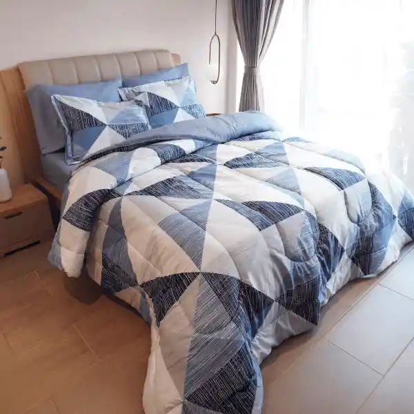 T INCLUYE • 1 Edredón acolchado • 2 Fundas de descanso (cama sencilla incluye 1 funda) CARACTERÍSTICAS • Tipo: Edredón acolchado. • Estilo: Con diseño estampado. (El estampado del doblefaz puede variar) • Material: 100 % Polisweet. • Hilos: 150. • Incluye funda cojín: No. • Hecho en: Colombia. • Incluye fundas almohada: Sí. (El estampado de las fundas puede variar) MEDIDAS • QUEEN: Edredón (235x240cm. aprox), fundas decorativas (55x75cm aprox) INSTRUCCIONES DE LAVADO • Usar una cantidad moderada de detergente. • No usar cloro o detergente blanqueador • Usar agua fria • lavar por separado. • No mezclar colores. • Usar lavadora de gran capacidad, 20 libra. • Al salir de la lavadora, no retorcer. • Se debe secar por el reverso y no exponer al sol. NOTA: La foto de este producto es de referencia y ha sido ambientada. No incluye accesorios, ni piezas adicionales ni ningún otro elemento que lo acompañan diferente a lo descrito.