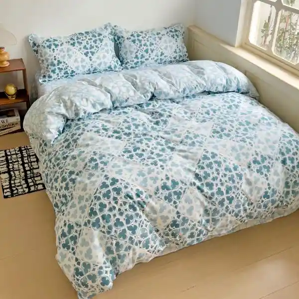 INCLUYE • 1 Edredón acolchado • 2 Fundas de descanso (cama sencilla incluye 1 funda) CARACTERÍSTICAS • Tipo: Edredón acolchado. • Estilo: Con diseño estampado. • Material: Fibras texturizadas y esmeriladas • Hilos: 180 • Incluye funda cojín: No. • Hecho en: Colombia. • Incluye fundas almohada: Sí. (El estampado de las fundas puede variar) MEDIDAS • QUEEN: Edredón (240x240cm. aprox), fundas decorativas (55x75cm aprox) INSTRUCCIONES DE LAVADO • Usar una cantidad moderada de detergente. • No usar cloro o detergente blanqueador • Usar agua fria • lavar por separado. • No mezclar colores. • Usar lavadora de gran capacidad, 20 libra. • Al salir de la lavadora, no retorcer. • Se debe secar por el reverso y no exponer al sol. NOTA: La foto de este producto es de referencia y ha sido ambientada. No incluye accesorios, ni piezas adicionales ni ningún otro elemento que lo acompañan diferente a lo descrito.