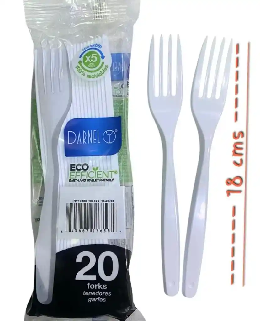 TENEDOR PLÁSTICO BLANCO 18 CMS X 20 UNDS BLANCO