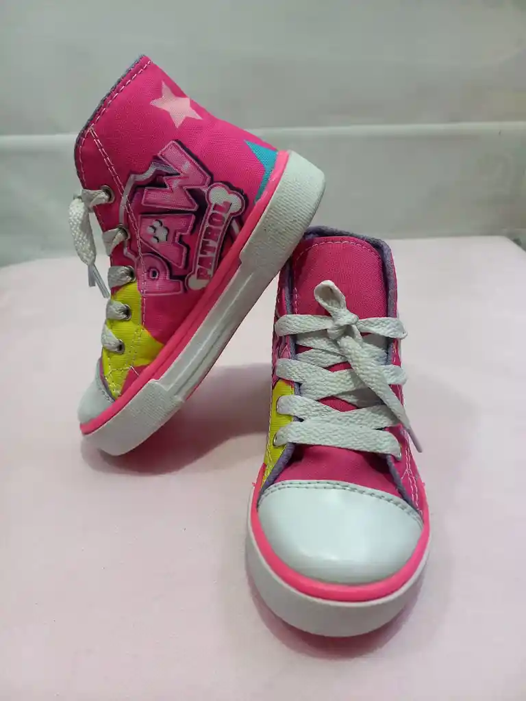 Tenis rosados, de paw patrol (patrulla canina), en bota, talla 24 para niña.