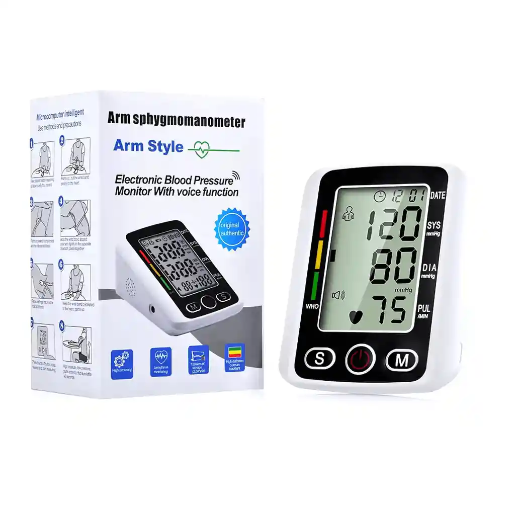 • TOMA PRESIÓN DIGITAL AUTOMÁTICO • GRAN PANTALLA LCD • INDICADOR DE FECHA Y HORA • ADVERTENCIA DE BATERÍA BAJA • AUTO APAGADO DE 30 SEGUNDOS • INDICADOR DE ULTIMAS LECTURAS DESCRIPCION: Controla tu salud fácilmente con el Tensiómetro Digital . Diseñado para mediciones precisas en el brazo, cuenta con función de voz y estuche incluido para mayor comodidad. Ideal para monitorear tu presión arterial en casa de forma práctica y segura. CARACTERISTICAS: ✔ Medición automática y precisa en el brazo. ✔ Detección del nivel del corazón para mayor exactitud. ✔ Función de voz para una experiencia más accesible. ✔ Registro de últimas mediciones para un mejor seguimiento. ✔ Apagado automático y alerta de batería baja.
