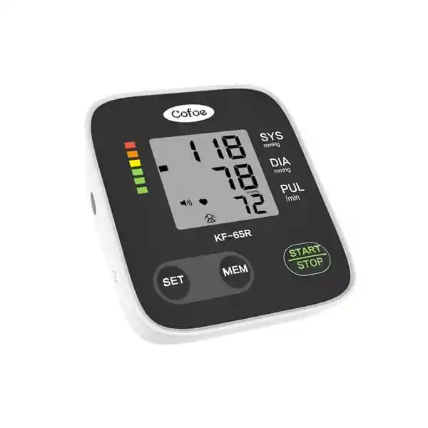 Tensiómetro Digital KF-65R El Monitor de Presión Arterial KF-65R es una solución avanzada y fiable para el monitoreo de tu salud cardiovascular. Diseñado para ofrecer mediciones precisas y cómodas, este dispositivo es ideal tanto para uso doméstico como clínico. Con tecnología de inflado avanzada y múltiples funciones inteligentes, el KF-65R se convierte en una herramienta indispensable para el seguimiento de la presión arterial y la detección temprana de arritmias.Tensiómetro Digital KF-65R Beneficios del Tensiómetro Digital KF-65R Medición Precisa y Fiable: Validado clínicamente para garantizar resultados exactos y consistentes. Comodidad y Facilidad de Uso: Tecnología de inflado que analiza las oscilaciones del pulso durante el inflado, garantizando una experiencia cómoda y mediciones precisas. Monitoreo Integral: Detección de arritmias y promedio de las últimas tres lecturas para un control detallado de tu salud cardiovascular. Practicidad: Función de apagado automático para ahorrar energía y una gran capacidad de memoria para dos usuarios. Indicador OMS: Guía fácil de entender para evaluar tu presión arterial según los estándares de la Organización Mundial de la Salud (OMS). Características del Tensiómetro Digital KF-65R Medición Automática: Medición completamente automática de la presión arterial y el pulso en el brazo. Método de Medición: Oscilométrico. Pantalla: Pantalla LCD clara y fácil de leer. Apagado Automático: Función de apagado automático para mayor eficiencia energética. Detección de Arritmias: Identificación de ritmos cardíacos irregulares. Indicador OMS: Clasificación de la presión arterial según los estándares de la OMS. Memoria: Almacena hasta 192 lecturas para 2 usuarios, facilitando el seguimiento a largo plazo. Promedio de Lecturas: Cálculo automático del promedio de las últimas tres lecturas. Compatibilidad con Tamaños de Brazo: Adecuado para circunferencias de brazo de 22 a 42 cm. Tecnología de Inflado Avanzada: Analiza las oscilaciones del pulso durante el inflado para garantizar mediciones precisas y confortables. Especificaciones Técnicas del Tensiómetro Digital KF-65R Descripción Especificaciones Dimensiones de la unidad 1129344 mm Dimensiones de la pantalla LCD 44*44 mm Fuente de alimentación DC DC 6V cuatro baterías AAA Fuente de alimentación AC DC 6V / USB 5V Rango de medición de presión arterial 0 a 280 mmHg Rango de medición del pulso 40 a 199 latidos/minuto Precisión de la presión ±3 mmHg Precisión del pulso ±5% REGISTRO SANITARIO No. INVIMA 2024DM-0028607 Contiene: Monitor de Presión Arterial KF-65R Brazalete ajustable (22-42 cm) Manual de usuario Estuche de almacenamiento Garantía: 1 año de garantía limitada por defectos de fabricación.