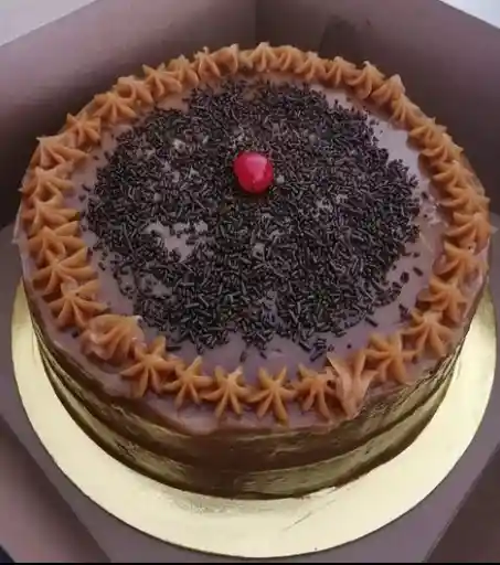 Deliciosa torta de vainilla con relleno y cubierta de arequipe. (Grande, rinde 30 a 35 porciones)