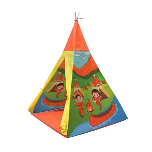 Estilo Tepee Con Diseño Triangular y Base Cuadrada. Tiene Impresos Diseños Alusivos a Indígenas. Con Recubrimiento Para el Piso.135 cm de Altura.