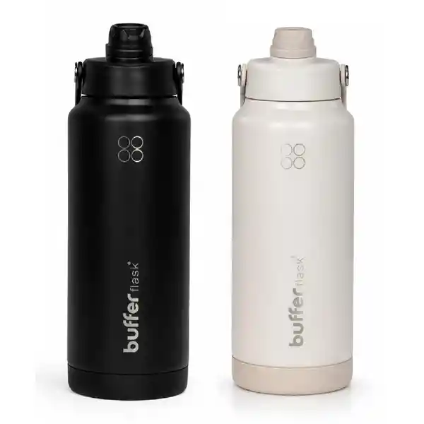 Una botella con gran capacidad diseñada para acompañarte a todas e hidratarte todo el día, sin perder la temperatura. - Triple capa de aislamiento térmico: La botella cuenta con una capa de acero 304 (seguro para estar en contacto con agua y alimentos), capa de cobre (mantener t° más tiempo) y acero exterior. - Pack 2 botellas: ideal para compartir con tus seres queridos ¡o tener para cambiar según tus looks! - Base de silicona: protección ante caídas y abolladuras. - Una tapa, dos usos: Su tapa doble salida permite ocupar con bombilla o beber directo de esta, según tu comodidad y preferencia. - La botella buffer de 1 L es apta para líquidos fríos y calientes, manteniendo la temperatura de estos por largos periodos de tiempo. - Tapa con agarre para llevar cómodamente - Resistente, duradero y anti derrames: fabricado con los mejores materiales, durará más años sin abollarse ni oxidarse. Además, cuenta con su tapa anti derrames para evitar accidentes. - Fácil de lavar y no retiene olores. - Apertura de tapa con botón pulsador, más seguro evitando accidentes - Libre de BPA - No contiene plomo: Contamos con estudio de "THERMO SCIENTIFIC" donde pusimos a prueba todos nuestros modelos de botellas y termos BUFFER en 2 cortes distintos: parte inferior y costado de la botella, dando como resultado NEGATIVO a presencia de plomo. --------------------------------------------------------- FICHA TÉCNICA - Incluye 1 tapa doble - Diseño 2 en 1 (tapa doble salida) - Capacidad: 1 Litro - Libres de BPA - Triple capa de aislamiento - Acero grado alimenticio - Laminado de cobre para mayor durabilidad de la temperatura - Incluye gomita antideslizante - Libre de plomo - Colores: 2 packs disponibles - Medidas: 27 cm x 9.5 cm - Peso: 510 grs --------------------------------------------------------- QUE VIENE EN LA CAJA - 1 Botella buffer 1 Litro **Buffer Flask® es distribuida en Colombia y Sudamérica exclusivamente por Builder Commerce SAS** ------------------------------------------------------------- PREGUNTAS FRECUENTES: ¿Cómo puedo lavar mi botella? Evita elementos abrasivos para no dañar las superficies. ¿Es anti derrame? Si, las botellas Buffer cuentan con un sistema seguro antiderrame, puedes llevarla en tu mochila sin riesgo de fugas.