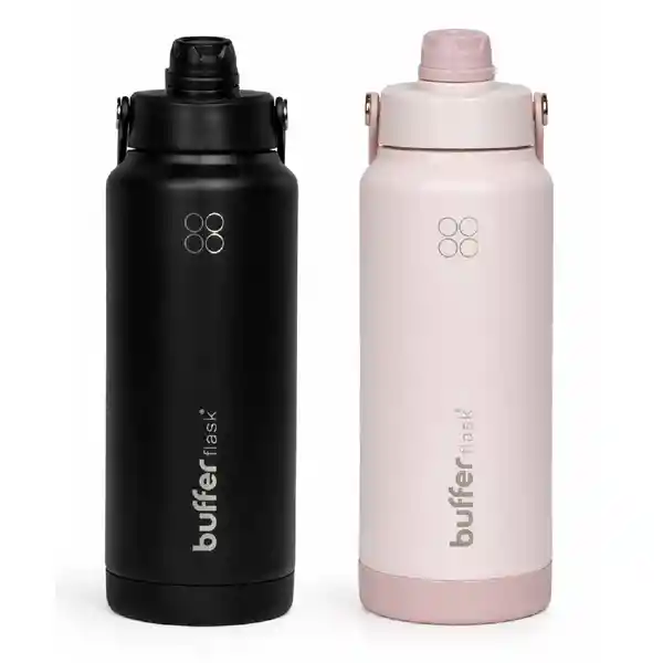 Una botella con gran capacidad diseñada para acompañarte a todas e hidratarte todo el día, sin perder la temperatura. - Triple capa de aislamiento térmico: La botella cuenta con una capa de acero 304 (seguro para estar en contacto con agua y alimentos), capa de cobre (mantener t° más tiempo) y acero exterior. - Pack 2 botellas: ideal para compartir con tus seres queridos ¡o tener para cambiar según tus looks! - Base de silicona: protección ante caídas y abolladuras. - Una tapa, dos usos: Su tapa doble salida permite ocupar con bombilla o beber directo de esta, según tu comodidad y preferencia. - La botella buffer de 1 L es apta para líquidos fríos y calientes, manteniendo la temperatura de estos por largos periodos de tiempo. - Tapa con agarre para llevar cómodamente - Resistente, duradero y anti derrames: fabricado con los mejores materiales, durará más años sin abollarse ni oxidarse. Además, cuenta con su tapa anti derrames para evitar accidentes. - Fácil de lavar y no retiene olores. - Apertura de tapa con botón pulsador, más seguro evitando accidentes - Libre de BPA - No contiene plomo: Contamos con estudio de "THERMO SCIENTIFIC" donde pusimos a prueba todos nuestros modelos de botellas y termos BUFFER en 2 cortes distintos: parte inferior y costado de la botella, dando como resultado NEGATIVO a presencia de plomo. --------------------------------------------------------- FICHA TÉCNICA - Incluye 1 tapa doble - Diseño 2 en 1 (tapa doble salida) - Capacidad: 1 Litro - Libres de BPA - Triple capa de aislamiento - Acero grado alimenticio - Laminado de cobre para mayor durabilidad de la temperatura - Incluye gomita antideslizante - Libre de plomo - Colores: 2 packs disponibles - Medidas: 27 cm x 9.5 cm - Peso: 510 grs --------------------------------------------------------- QUE VIENE EN LA CAJA - 1 Botella buffer 1 Litro **Buffer Flask® es distribuida en Colombia y Sudamérica exclusivamente por Builder Commerce SAS** ------------------------------------------------------------- PREGUNTAS FRECUENTES: ¿Cómo puedo lavar mi botella? Evita elementos abrasivos para no dañar las superficies. ¿Es anti derrame? Si, las botellas Buffer cuentan con un sistema seguro antiderrame, puedes llevarla en tu mochila sin riesgo de fugas.
