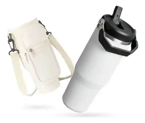 Este set exclusivo de termo Flip Straw de 900ml y funda protectora de neopreno Innovo+ es ideal para personas activas, amantes del diseño práctico y moderno. Con una capacidad generosa y un sistema de sorbete plegable, el termo es ideal para bebidas frías o calientes durante todo el día. BLANCO La funda está diseñada en neopreno premium, un material suave, resistente y térmico, que protege tu termo de golpes y rayones. Además, incluye bolsillo frontal con cremallera, correa ajustable y diseño ergonómico para llevarlo a todas partes: caminatas, ciclismo, gimnasio, camping o viajes. Beneficios destacados: Mantiene la temperatura: Ideal para conservar bebidas frías o calientes por más tiempo. Capacidad de 900ml (30oz): Suficiente para mantenerte hidratado todo el día. Funda de neopreno acolchada: Protege contra golpes, rayones y caídas. Incluye bolsillo frontal: Perfecto para llaves, dinero, tarjeta o snacks. Correa ajustable y removible: Llévalo al hombro o tipo bandolera con total comodidad. Fácil de limpiar: Termo de acero inoxidable y funda lavable. Diseño moderno y funcional: En color rosa pastel, ideal para todos los estilos. Ficha Técnica: Termo Flip Straw Capacidad: 900 ml (30 oz) Material: Acero inoxidable + tapa plástica con sorbete plegable Color: Rosa pastel Altura: 22 cm Características: Conserva temperatura, sistema antiderrame, fácil de beber