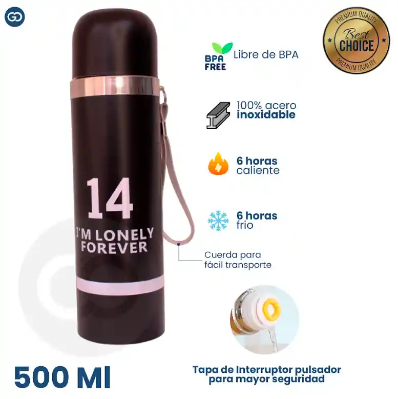 Experimenta la excelencia en conservación térmica con nuestro Termo Botella de 500ML en Acero Inoxidable. Este elegante y funcional termo está diseñado para mantener tus bebidas calientes o frías en cualquier momento y lugar. Su construcción en acero inoxidable garantiza durabilidad y resistencia, mientras que su diseño libre de BPA asegura la pureza de tus líquidos. Perfecto para el uso diario, actividades al aire libre o simplemente para mantener tus bebidas favoritas a la temperatura perfecta. Características Principales: Conservación Térmica: Mantiene tus bebidas calientes o frías durante horas, para que disfrutes de ellas en su mejor estado. Libre de BPA: Garantiza la seguridad y pureza de tus líquidos, sin riesgos para la salud. Cuerda para Fácil Transporte: Con una cuerda resistente que facilita su transporte, ideal para llevarlo contigo a donde vayas. Tapa de Válvula Pulsador: Evita derrames indeseados con la tapa de válvula pulsador, que permite un vertido controlado y sin riesgos de que se rieguen las bebidas. Medidas Compactas: Con dimensiones de 23x6,5 cm, este termo se adapta perfectamente a tu estilo de vida, siendo compacto y fácil de llevar.