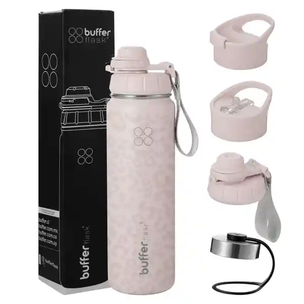 ¡Mantén la temperatura dentro de tu botella con Buffer! - Sabemos que es importante la temperatura dentro de tu botella, por eso tu botella térmica Buffer se mantiene ¡24 horas fría y 12 horas caliente! - Incluye 4 tapas diferentes, para las puedas intercambiar según tus necesidades. - Su doble pared aislada al vacío, permite mantener la temperatura de los líquidos por mayor tiempo y al evitar la transferencia de temperatura elimina el riesgo de quemarte al portar líquidos calientes. - Tu botella buffer no suda! No te volverás a encontrar con objetos o superficies mojadas alrededor. --------------------------------------------------------- FICHA TÉCNICA - Botella con 4 tapas para elegir Buffer - Capacidad: 700 ml - Libres de BPA - Material Interior: Acero 100% inoxidable 304 - Material Exterior: Revestimiento de cobre - Medidas boca botella: 6 cm - Medidas: 23,5 x 9 cm - Peso: 430 gr --------------------------------------------------------- QUE VIENE EN LA CAJA - 1 Botella térmica Buffer - 4 tapas para elegir **BUFFER® es distribuida en Colombia exclusivamente por Builder Commerce SAS**