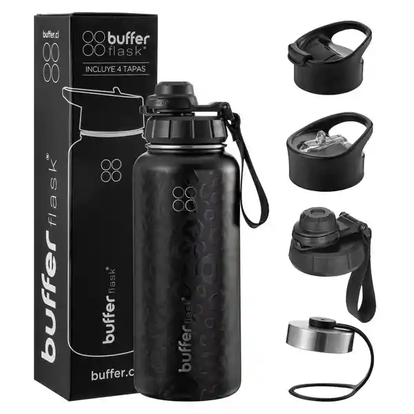 Termo Botella Agua Inox Buffer + 4 Tapas - Black Leopard