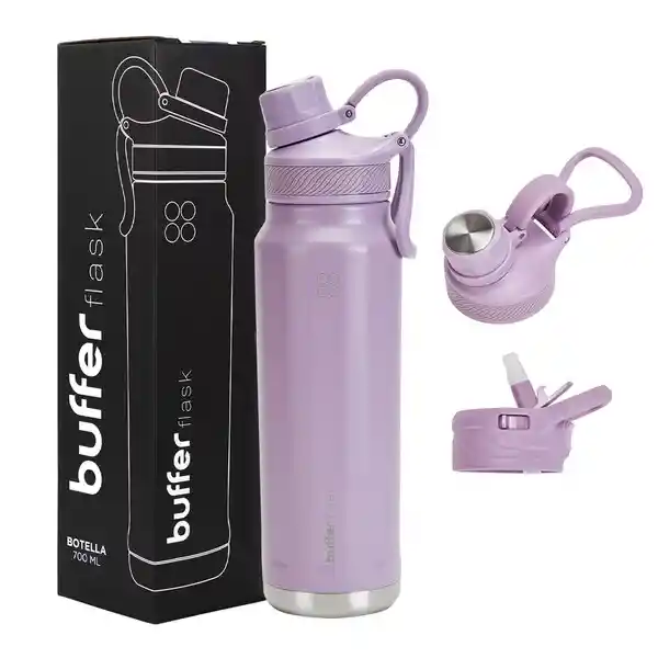 Una botella diseñada para acompañarte en todas tus aventuras ¡pero de la forma más cómoda! Tu Buffer es la solución para beber tus tragos favoritos en todo lugar y a toda hora. - Más práctica: La botella buffer de 700 Ml. Cuenta con 2 tapas para intercambiar cuando desees, así poder tomar líquidos fríos y calientes, todo con una misma botella. - Forma hexagonal: para un mejor agarre de tu botella, te permitirá llevarla cómodamente en tu mano sin necesidad de esfuerzo alguno. - Larga duración de tus bebestibles: Mantiene tus líquidos fríos 24 hrs y Calientes durante 12 hrs - Más Ecológico: olvídate de desechar vasos plásticos, lleva tu vaso contigo y coopera con cuidar el planeta - Resistente, duradero y anti derrames: fabricado con los mejores materiales, durará más años sin abollarse ni oxidarse. Además, cuenta con su tapa anti derrames para evitar accidentes. - Fácil de lavar y no retiene olores. - Libre de BPA - Acero inoxidable de alta calidad: su acero 18/8 (Acero inox 304) no se corroerá ni oxidará. Disponible en los colores Ivory, Negro, Turquesa, Blue Verdi, Sage green, Cool Grey, Lila Power o Azul, elige tu favorito en el botón “elige tu color” --------------------------------------------------------- FICHA TÉCNICA - Incluye 2 tapas intercambiables - Capacidad: 700 ml - Libres de BPA - Material Interior: Acero 100% inoxidable 304 - Colores: Ivory, Negro, Turquesa, Blue Verdi, Sage green, Cool Grey, Lila Power o Azul. - Medidas: 28 cm x 8 cm - Peso: 410 grs --------------------------------------------------------- QUE VIENE EN LA CAJA - 1 Botella buffer 700 ml - 2 Tapas intercambiables - 1 Pitillo plástica reutilizable ------------------------------------------------------------ ¿QUÉ TAPAS INCLUYE? 1. Pitillo: ideal para bebidas frías, esta cómoda tapa incluye un Pitillo para beber tus líquidos favoritos. 2. Rosca pequeña: Permite el paso de sorbos más pequeños de agua, ideal para utilizar en movimiento. **BUFFER® es distribuida en Colombia y Sudamérica exclusivamente por Builder Commerce SAS** ------------------------------------------------------------- PREGUNTAS FRECUENTES: ¿Cómo puedo lavar mi botella? Evita elementos abrasivos para no dañar las superficies. Te recomendamos usar nuestro kit de limpieza de botellas ¿Es anti derrame? Si, las botellas Buffer cuentan con un sistema seguro antiderrame, puedes llevarla en tu mochila sin riesgo de fugas.