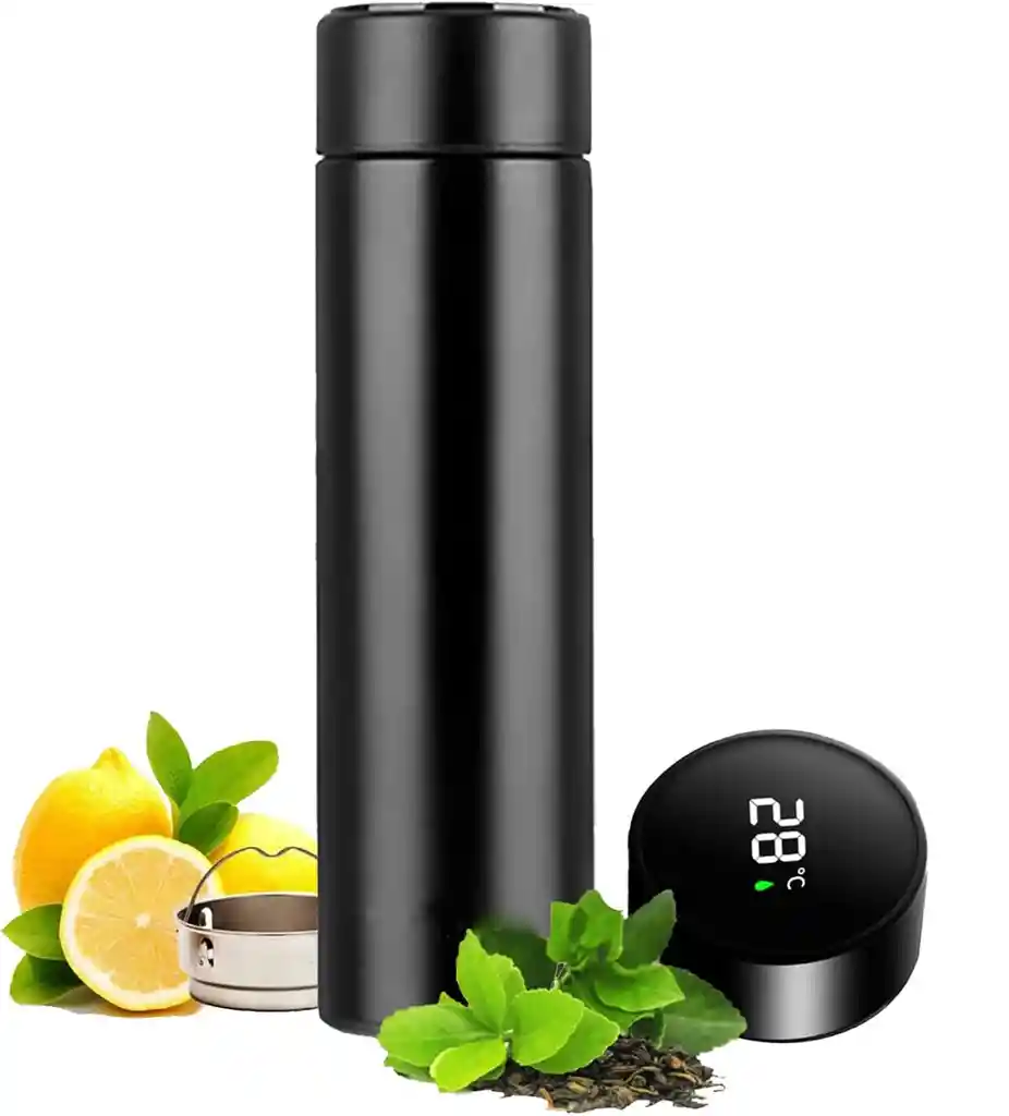 ● Pantalla Inteligente Led: Botella de agua con una pantalla digital grande para mostrar la temperatura interna del líquido. ● Retención de temperatura de 24 horas: Mantiene el líquido caliente hasta 12 horas y frío hasta 24 horas. ● Aislamiento al vacío de doble pared: Cobre revestido en la pared interna para un alto rendimiento de retención de temperatura de hasta 24 horas. ● Acero Inoxidable de grado alimenticio 304: Resistente a la oxidación y corrosión, sin sabor metálico ni oxidación. Se puede usar como botella de infusión de té. ● Ajuste perfecto y fácil de llevar: Diseñada para actividades al aire libre, gimnasio, oficina, picnic, ciclismo, etc. Un regalo ideal para amigos y familiares. ● Calidad de construcción del termo: Hecho de acero inoxidable 304 y exterior de metal 201. Revestimiento anticorrosión con aislamiento al vacío de doble pared. ● Capacidad de 500 ml / 17 oz.