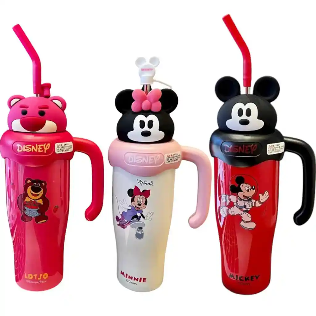 Disney Lotso 800Ml tazas enfriadoras de café helado Mickey ,Minnie Mouse y lotso, 316 botella de agua termo de acero inoxidable taza con pajita de gran capacidad regalos.