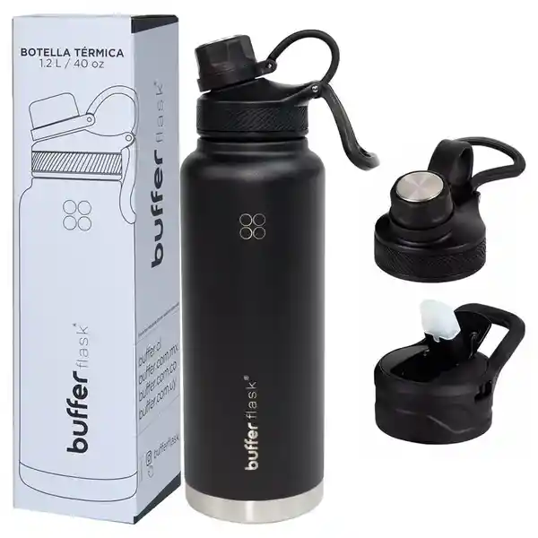 ¡Comodidad, seguridad e hidratación ante todo! La botella térmica Buffer de 1.2 Lt te permitirá mantenerte hidratado durante mucho más tiempo gracias a su gran tamaño, diseñada pensando en tu comodidad, incluye tapas para poder ocupar en distintos contextos. - Gran capacidad y comodidad: Cuenta con un diseño práctico y fácil de transportar, su tamaño es ideal para llevar contigo en todas, cuenta con tapas para que puedas elegir tu favorita según tus necesidades del momento. - Te ayudará a llevar tus bebestibles con mucho estilo, ideal para mantenerte sano tomando la cantidad correcta de agua al día. - Sabemos que es importante la temperatura dentro de tu botella, por eso tu botella térmica Buffer se mantiene ¡24 horas fría y 12 horas caliente! - Ideal para ocupar con bebidas frías y calientes: Las botellas Buffer se caracterizan por ser multifacéticas, es por esto que te permiten mantener bebidas frías y calientes sin problema. - Sus 2 tapas cuentan con sistema anti fugas, pudiendo darla vuelta, llevarla en tu bolso o cartera sin riesgo de derrames. - Su doble pared aislada al vacío, permite mantener la temperatura de los líquidos por mayor tiempo y al evitar la transferencia de temperatura elimina el riesgo de quemarte al portar líquidos calientes. - Tu botella Buffer no suda! No te volverás a encontrar con objetos o superficies mojadas alrededor. - Su manilla te ayudará a transportarla fácil y cómodamente. - Perfecta para acompañarte en tu día a día, salidas al cerro, paseos, trabajo y mucho más. - Práctica y fácil de llevar contigo a todos lados, ideal para utilizar en invierno y verano —--------------------------------------------------------------------------------- FICHA TÉCNICA - Botella con 1200 ml con tapas + Pitillo plástica Buffer - Capacidad: 1200 ml - Libres de BPA - Para bebidas frías y calientes - Incluye tapas para distintos usos - Material Pitillo: plástico duro - Material Interior: Acero 100% inoxidable 304 —--------------------------------------------------------------------------------- ¿QUÉ TAPAS INCLUYE? Pitillo: ideal para bebidas frías, esta cómoda tapa incluye una Pitillo para beber tus líquidos favoritos. Rosca pequeña: Permite el paso de sorbos más pequeños de agua, ideal para utilizar en movimiento. —---------------------------------------------------------------------------------------------------------- QUE VIENE EN LA CAJA - 1 Botella térmica Buffer de 1200 ml - 2 tapas - 1 Pitillo plástico transparente